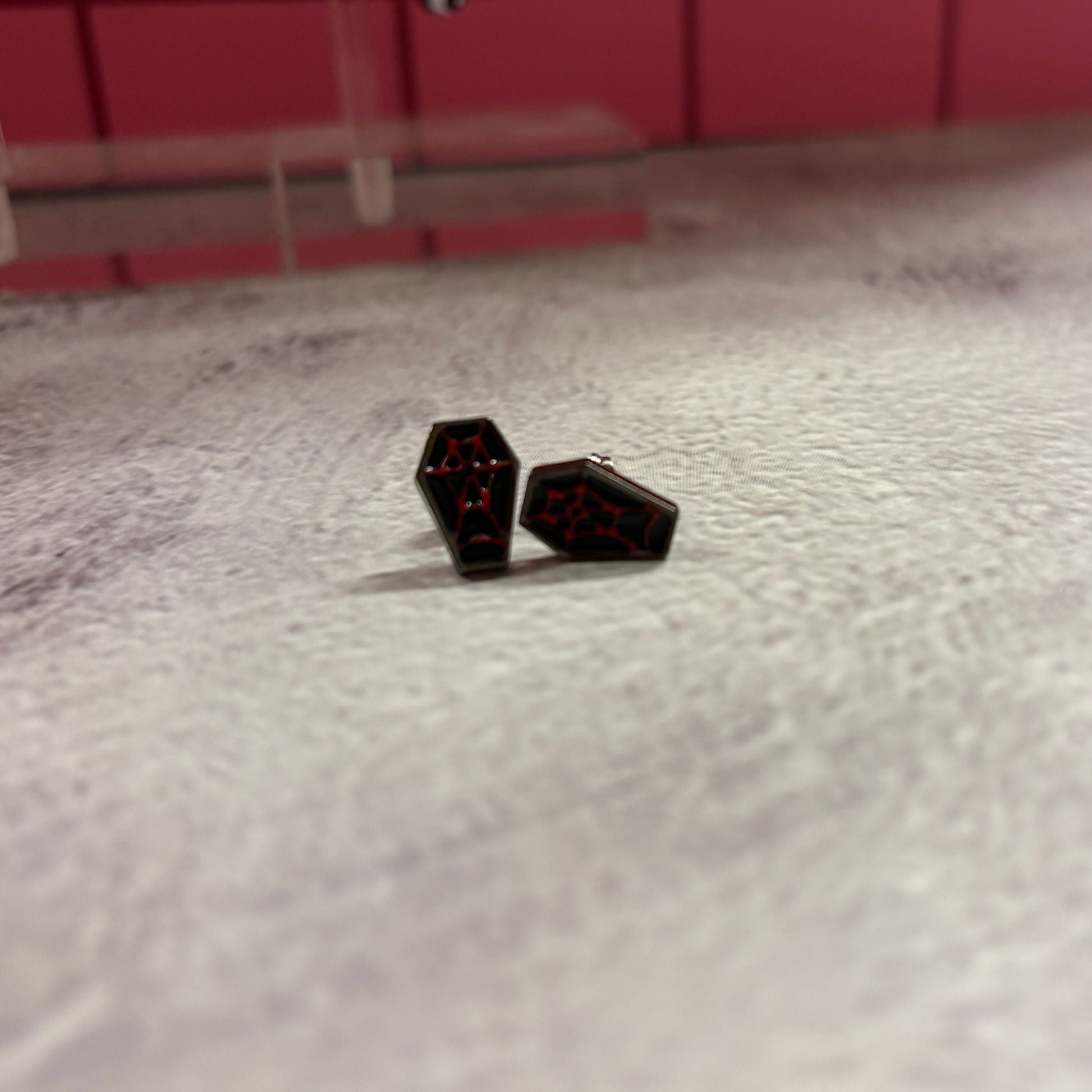 Coffin Stud Earrings | Gothic Red & Black Alternative Jewelry